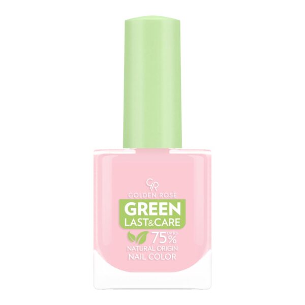 GR Green Last&Care عبارة عن تركيبة طلاء أظافر نباتية وطبيعية (قائمة على نباتات نظيفة) توفر لمعانًا ولونًا غنيًا للأظافر بينما تسمح لأظافرك بالبقاء بصحة جيدة. لا تحتوي التركيبة على مكونات مشتقة من الحيوانات، بما يصل إلى 75% من المكونات الطبيعية و80% من المكونات الحيوية. تتكون التركيبة من مكونات نباتية عالية الجودة مثل قصب السكر والقطن والكسافا والذرة. العبوة مصنوعة بنسبة 20% من مواد معاد تدويرها بعد الاستهلاك (أجزاء بلاستيكية)